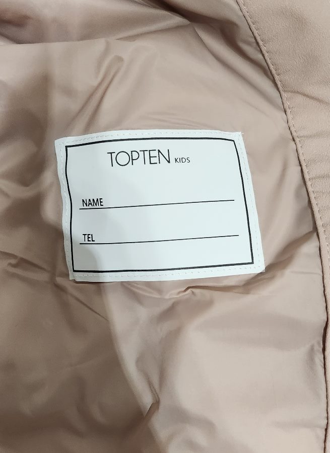 소매 안쪽은 립 원단으로 찬바람 차단효과가 있습니다. 핑크색과 잘 어울리게 민트색으로 되어 예쁩니다. 간혹 실내 체험장 같은 곳을 가게 되면 겉옷을 벗고 놀기도 하는데요. 분실되지 않도록 이름과 연락처 쓰는 곳도 옷 안쪽에 있습니다. 세심하게 잘 되어 있네요.