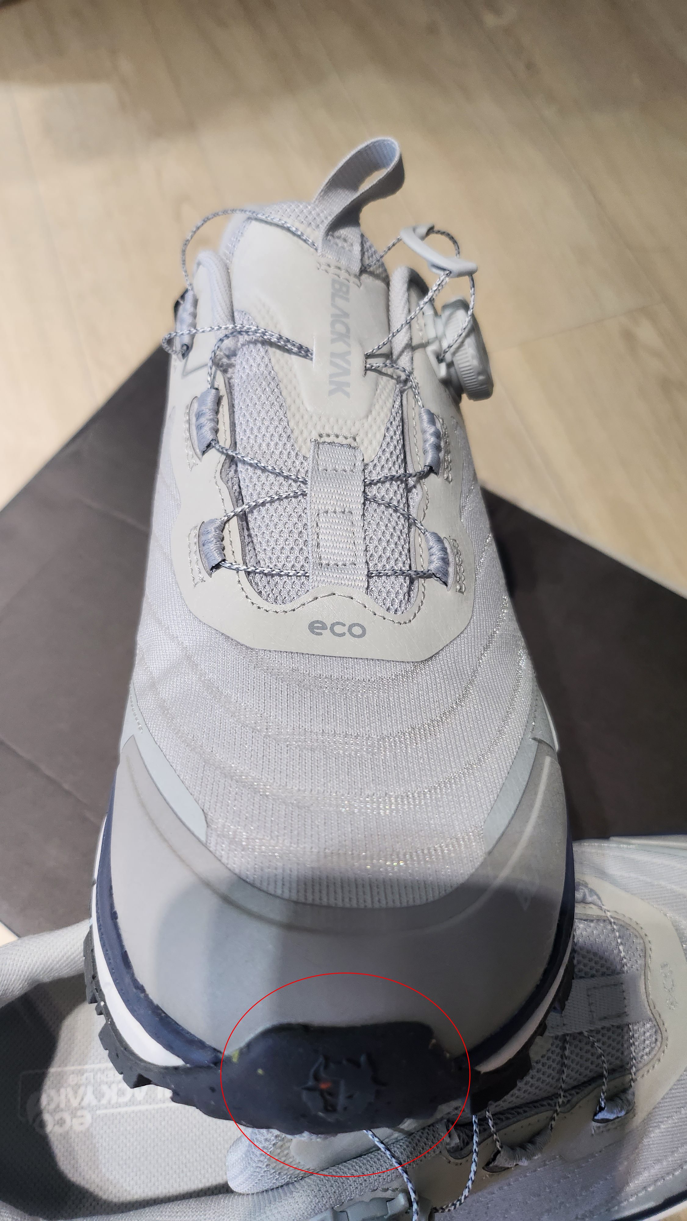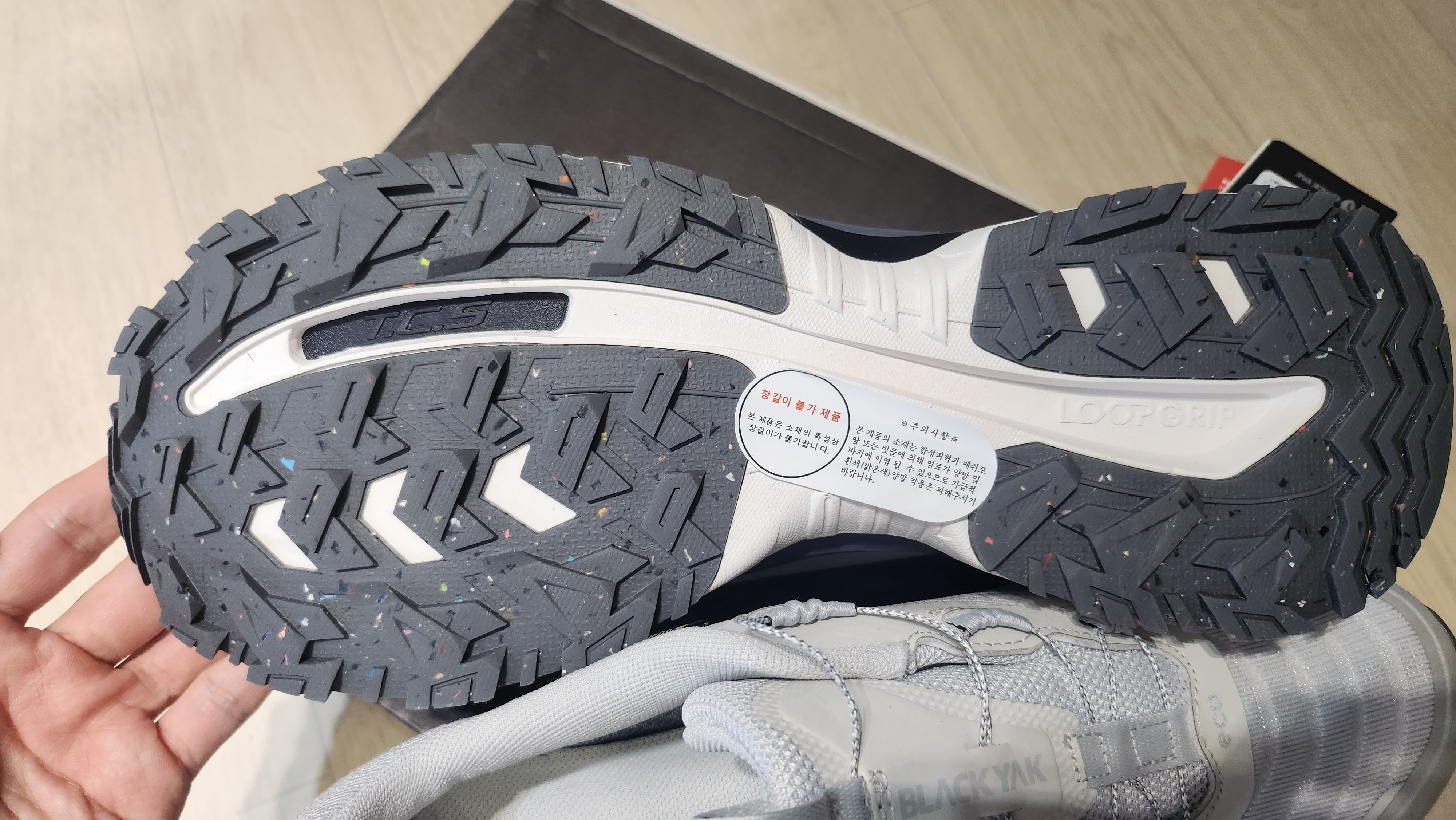 디테일하게도 신발 앞굽에 블랙야크 로고를 새겨놨습니다. 신발 뒤쪽도 탄탄하게 발목을 잘 잡아줄 것 같네요. 내구성이 좋아 보이는 모습입니다.