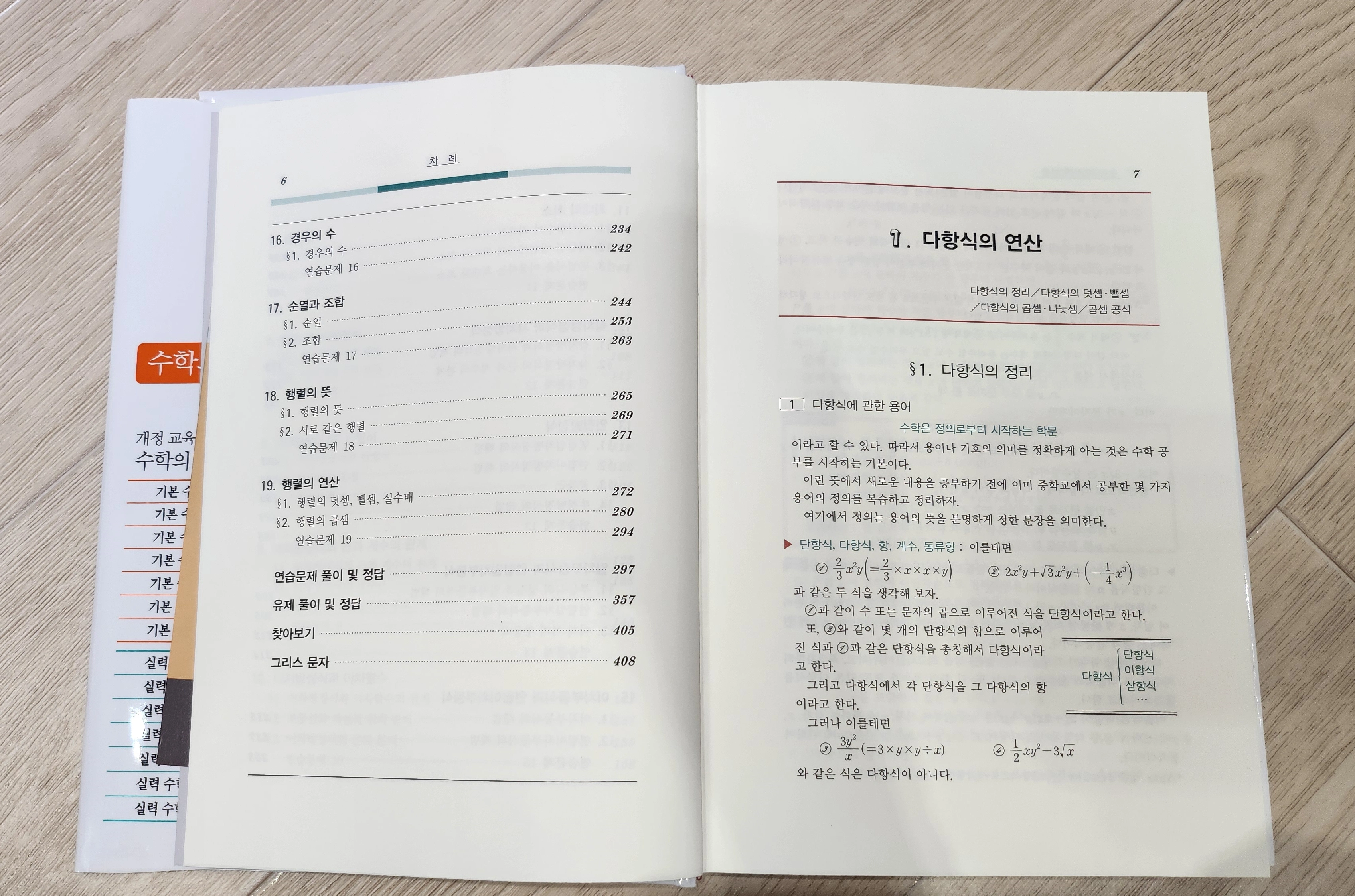 90년대 학창 시절 수학의 정석으로 수학 공부를 했던 시절이 있었는데요. 2025년 이후에 고등학교에 입학할 자녀 수학 선행을 위해 서점에 수학의 정석을 구입했습니다. 서점에서 현재 아이 학년을 물어보더니 공통수학 1을 구입하면 된다고 하네요. 그래서 2025년 이후 고등학교 입학생부터 적용될 새 교육과정에 맞춰서 개정된 수학의 정석 공통수학 1 기본 편을 구입했습니다.