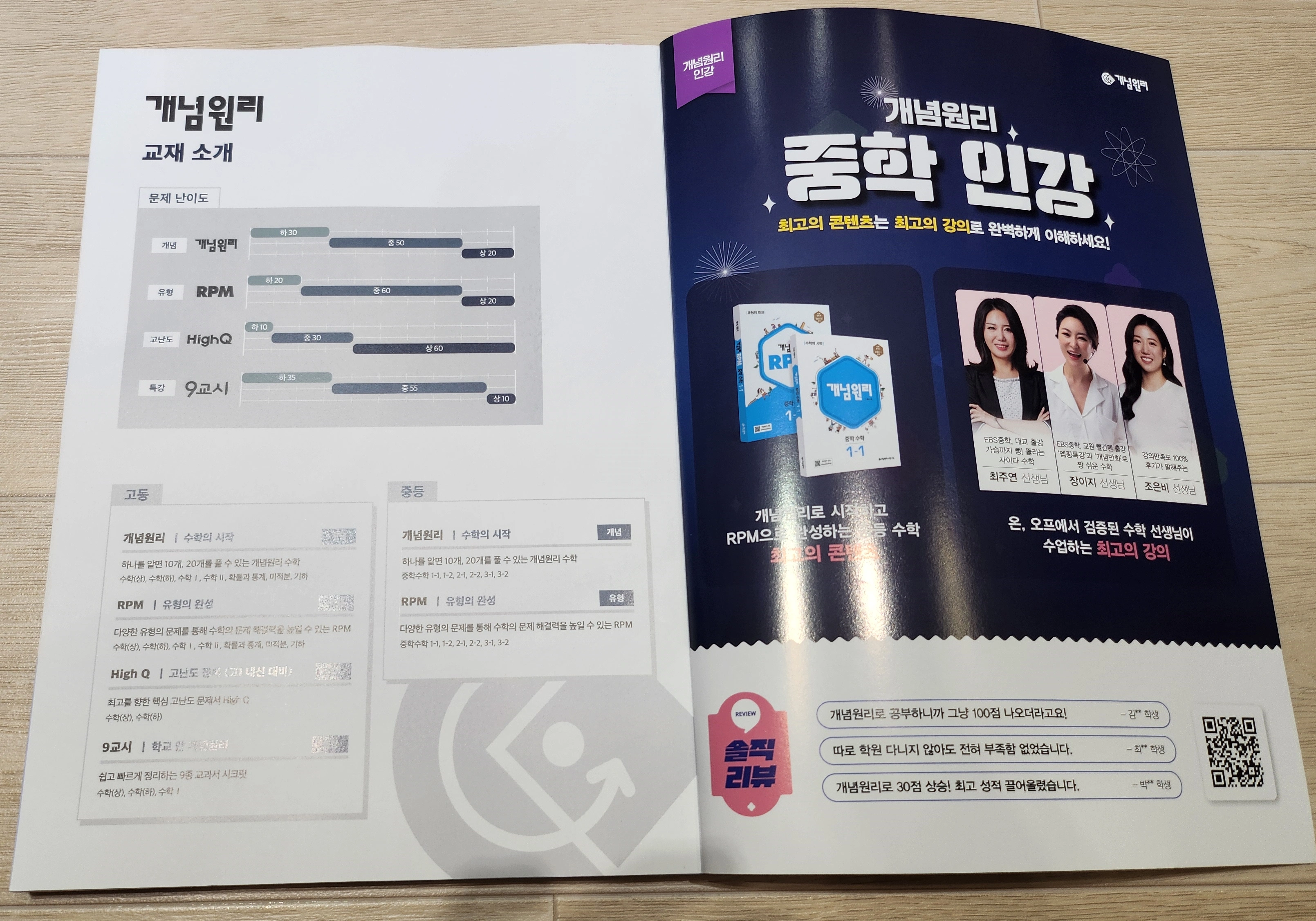개념원리 RPM은 많은 학생들이 선택하는 유형 문제집입니다. 하지만 중학교 유형 문제집에 여러 가지가 있으니 본인 수준에 잘 맞는 교재로 선택하시기 바랍니다.