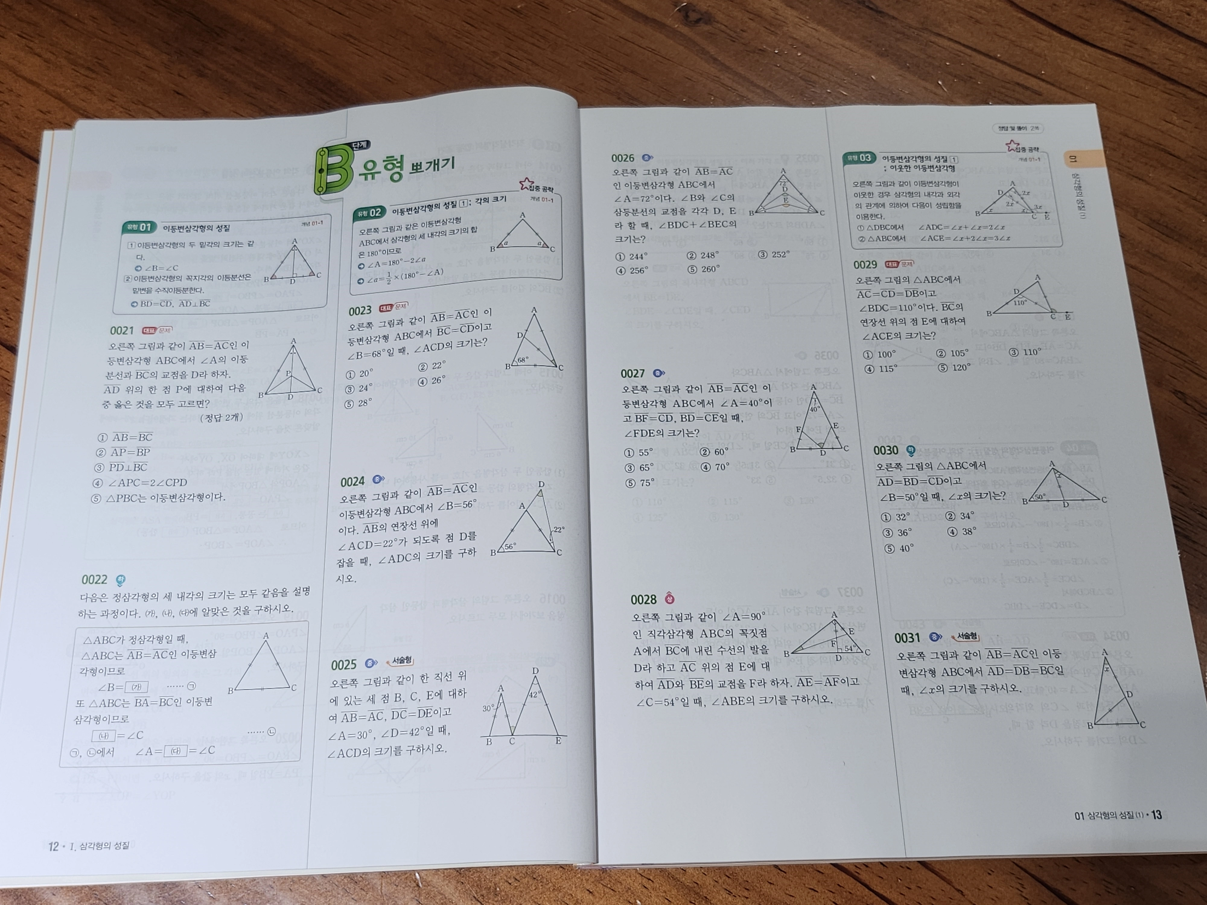 B단계에서는 입체적 유형화와 충분한 문제로 유형 정복을 할 수 있습니다.