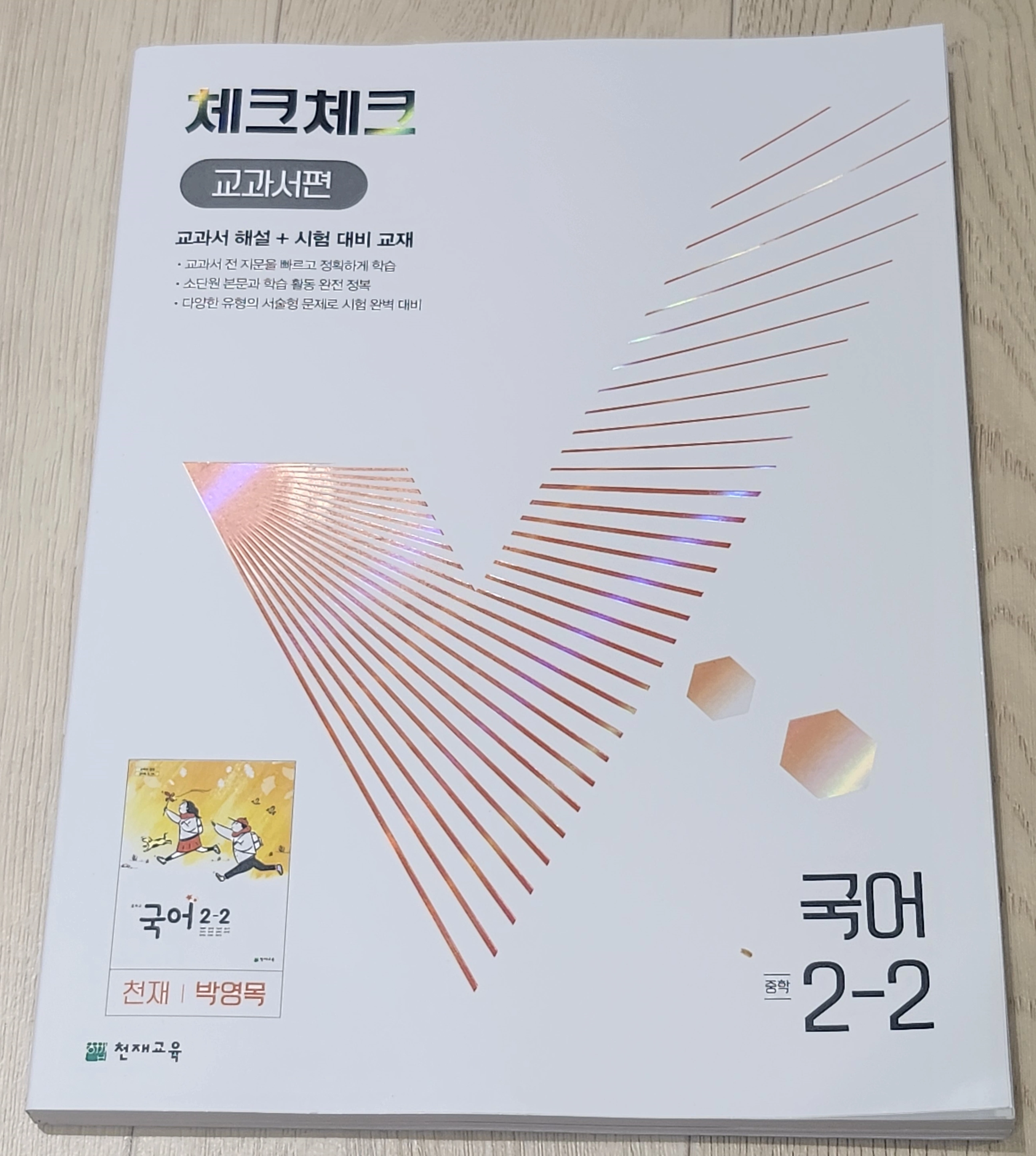 중학교 2학년 자녀 2학기 국어 내신 대비용 문제집입니다. 학원에서 보조교재로 사용할 예정이라서 구입하게 되었습니다. 체크체크는 수학문제집만 있는 줄 알았는데 국어 문제집도 나오고 있었네요. 혹시 국어 문제집 교재 구입에 참고하시라고 간단히 소개해봅니다.